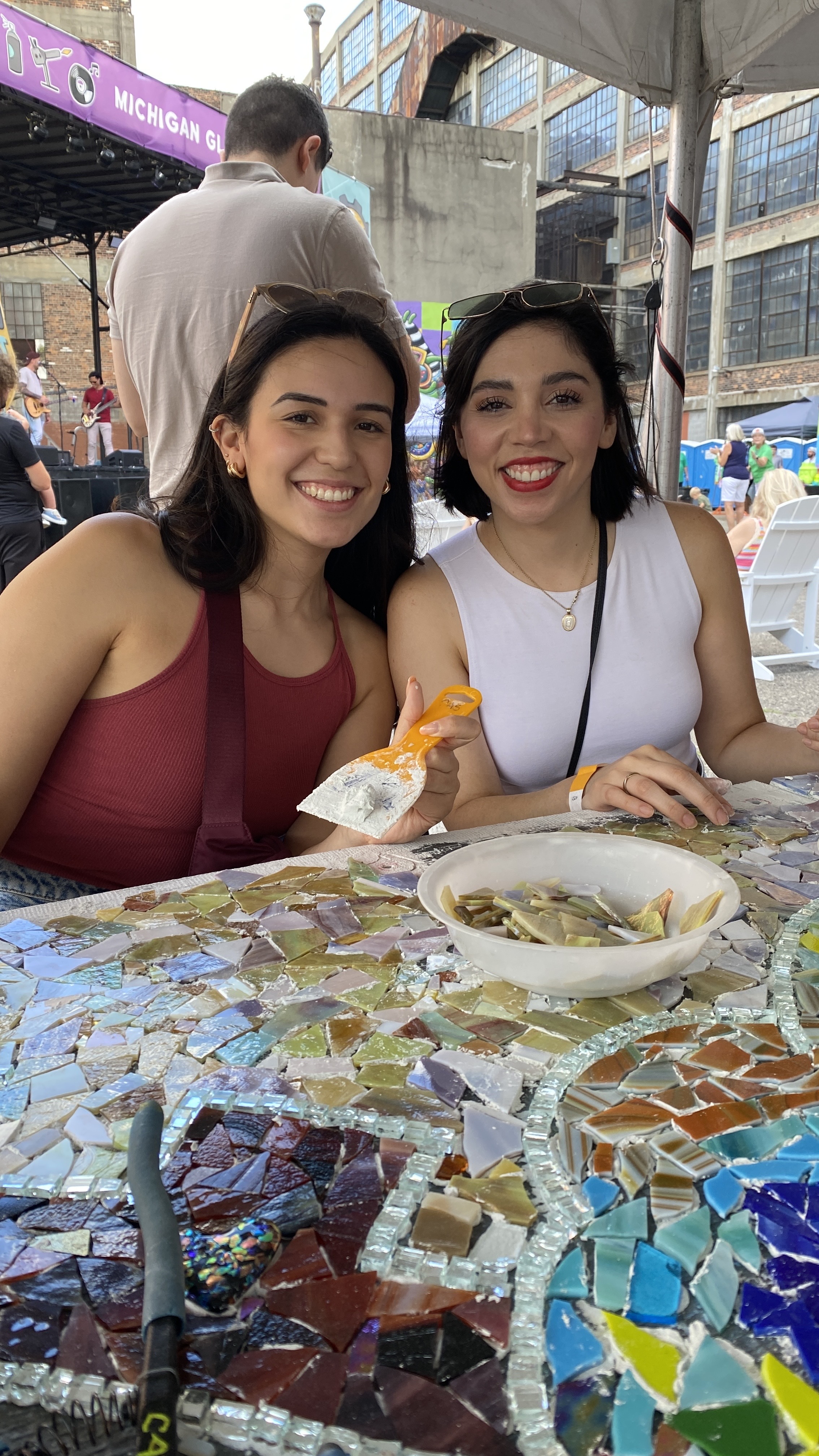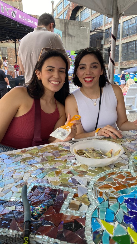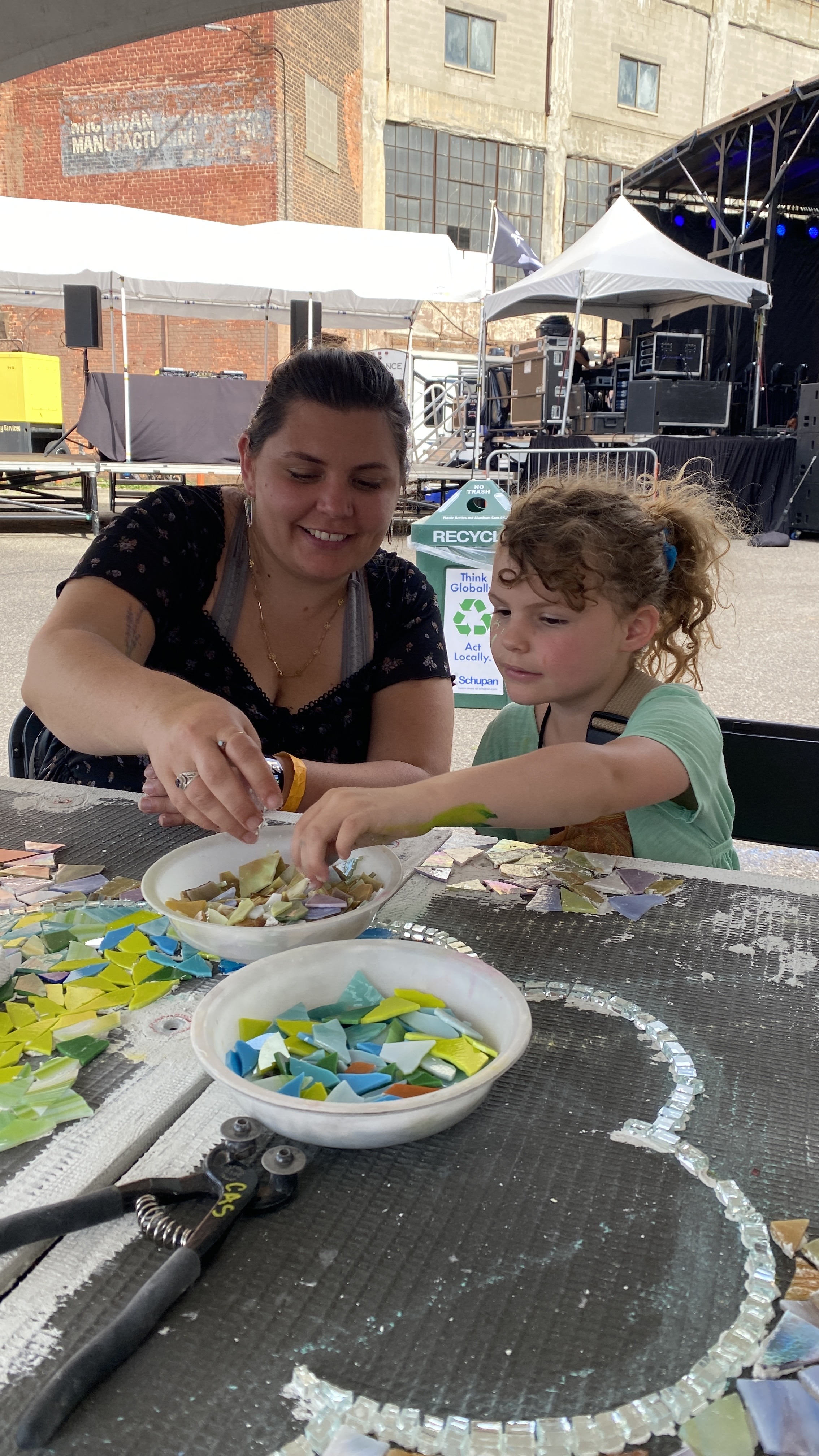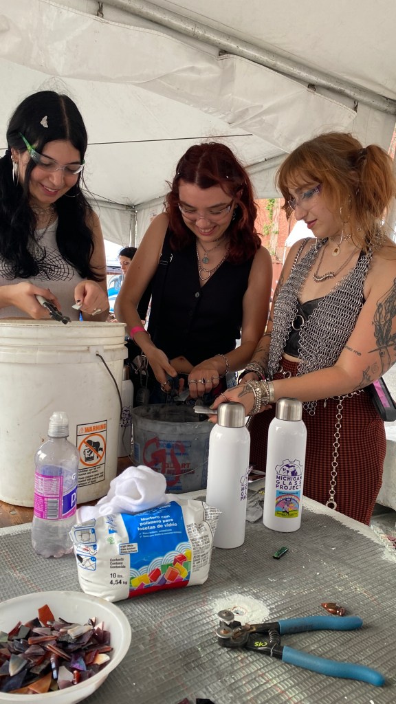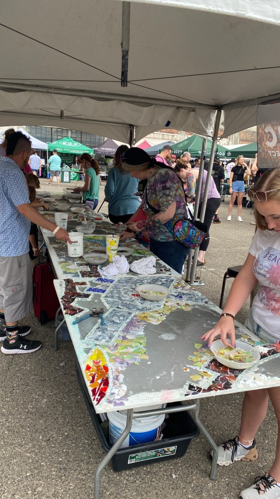 The Michigan Glass Project Community Mosaic was built during the three day art and music festival, June 21-23, 2024. Festival doors opened at noon each day and participants built the mosaic between noon and 7:30-8pm daily. Here is a visual journal of the project coming together from design to installation during the Murals in Islandview Festival held September 23-28, 2024.