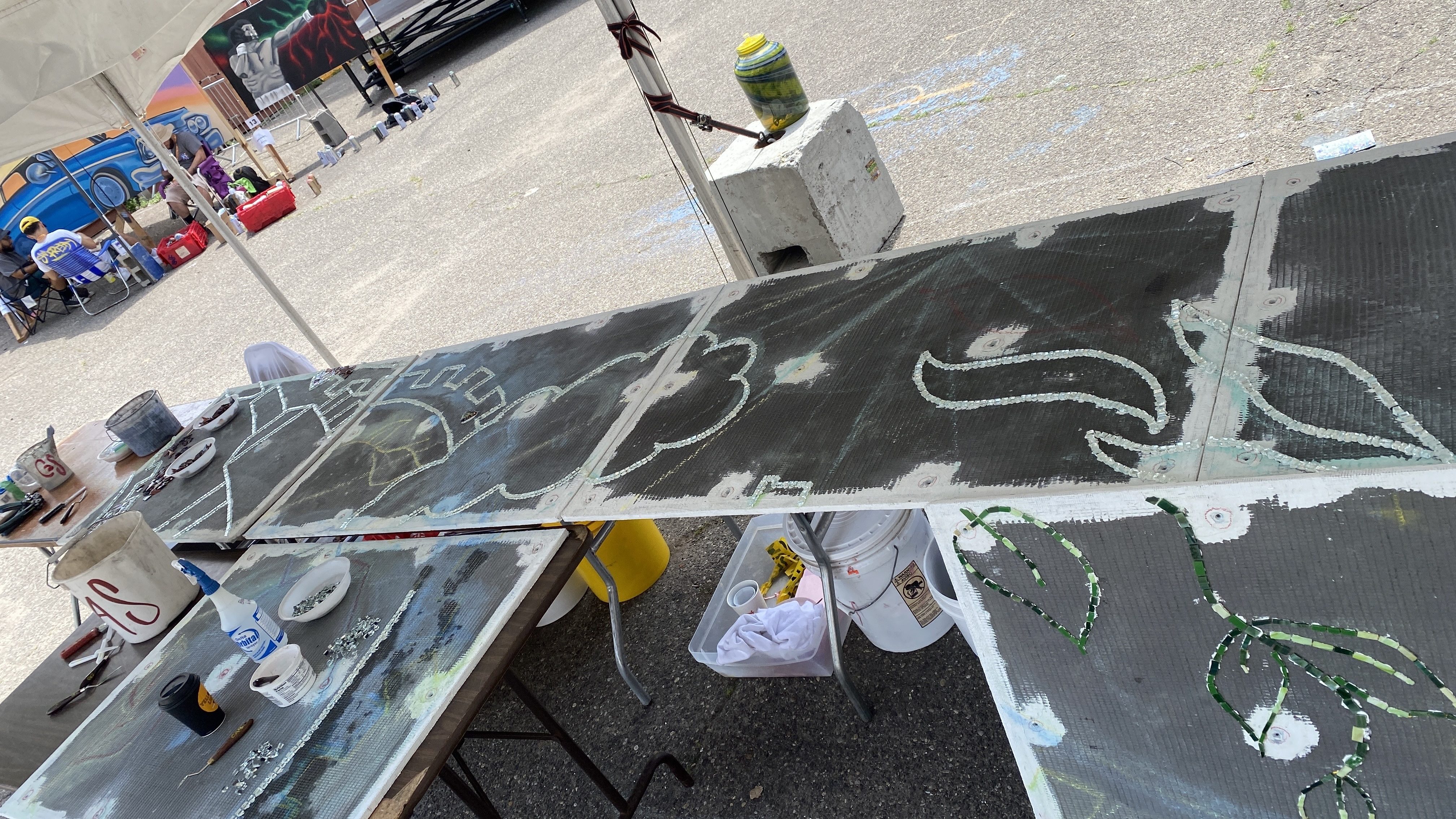 Design lines attached and ready for festival go-ers to mosaic! (June 22, noon)
